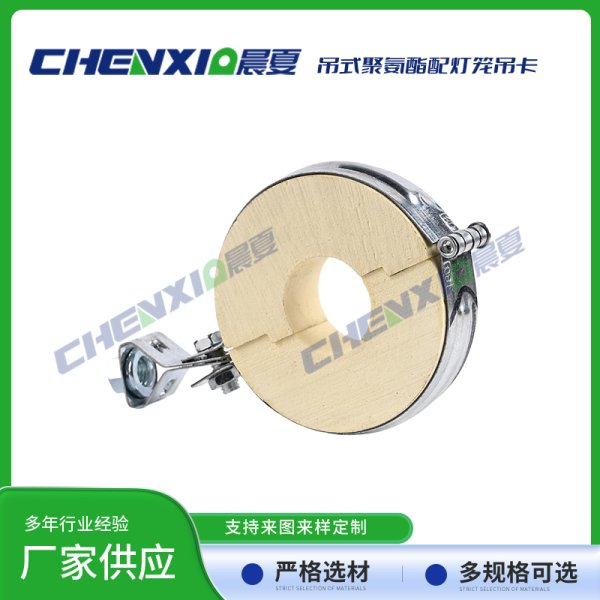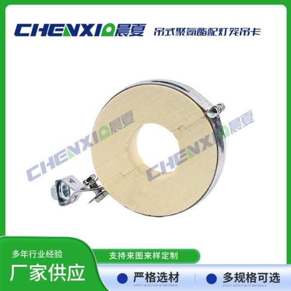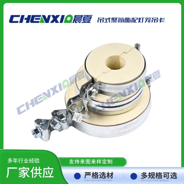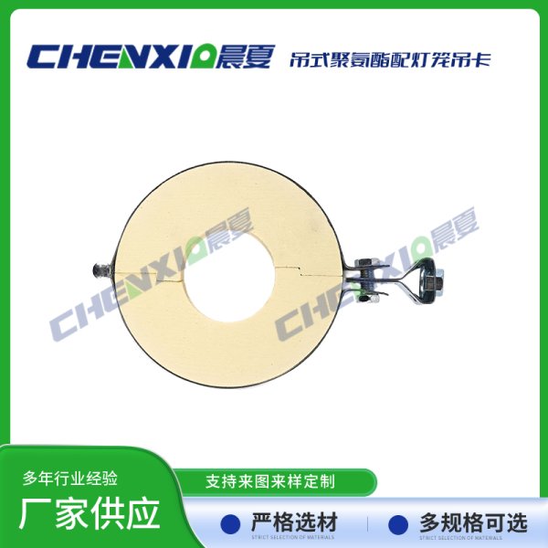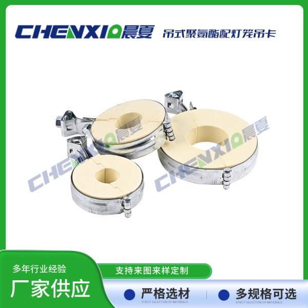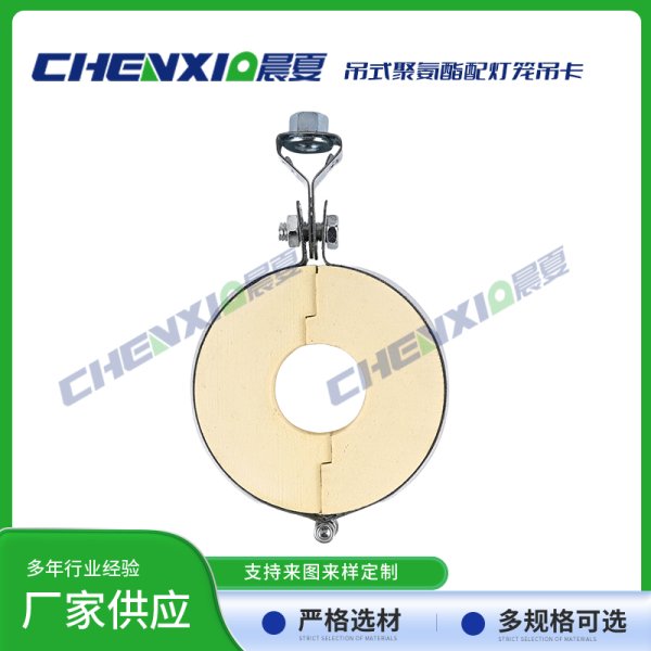 吊式PU聚氨酯管托配灯笼抱箍由异氰酸酯与聚醚为主原料,再加上发泡剂、触媒和阻燃剂,经高速搅拌混合反应生成的具有塑胶、橡胶和软木特性的发泡聚合体。泡体是由成千上万极微小均匀的单个细胞组成,呈立体蜂窝式的结构。其热传导率低、抗压强度高、吸水率低,有沥青木制品及其他类衬垫物难以比拟的优良性质,是深冷管道管托、鞍座及低温设备垫块的理想材料。在国内及欧美国家用于石油化工基地、LNG液化气厂、冷链基地及中央空调系统之管托、支吊架及垫块等。
