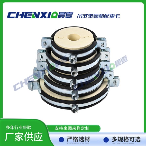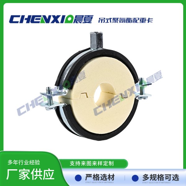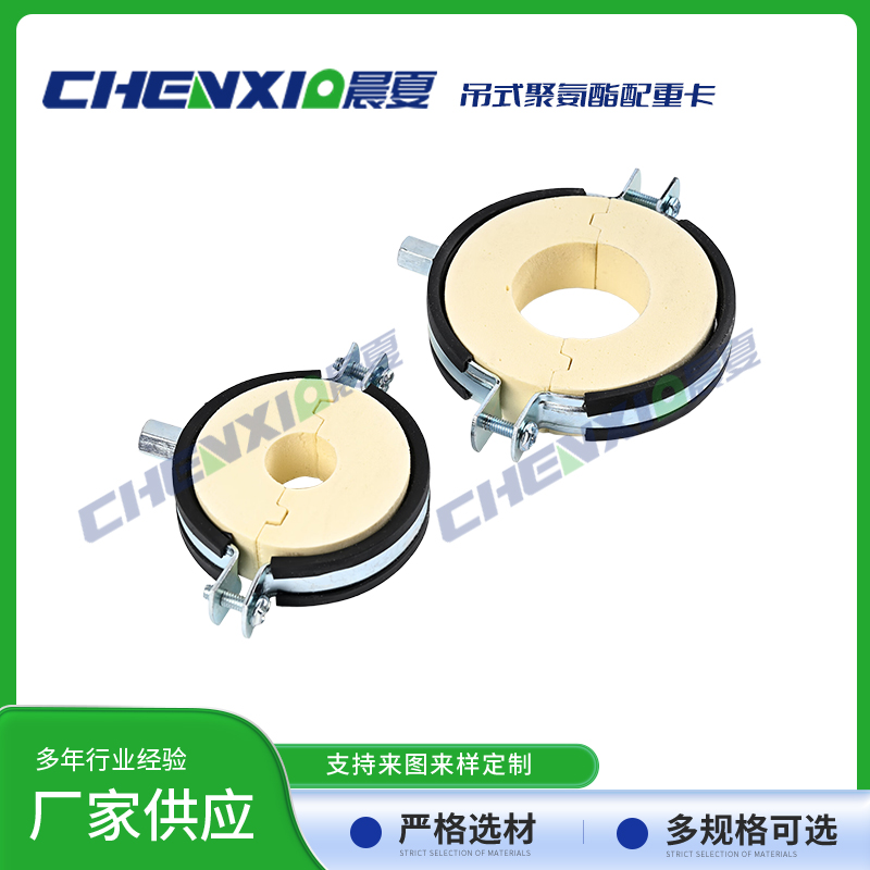 上海晨夏五金建材有限公司吊式PU聚氨酯管托配灯笼抱箍由异氰酸酯与聚醚为主原料,再加上发泡剂,触媒和阻燃剂,经高速搅拌混合反应生成的具有塑胶,橡胶和软木特性的发泡聚合体。泡体是由成千上万极微小均匀的单个细胞组成,呈立体蜂窝式的结构。其热传导率低,抗压强度高,吸水率低,有沥青木制品及其他类衬垫物难以比拟的优良性质,是深冷管道管托,鞍座及低温设备垫块的理想材料。在国内及欧美国 家用于石油化工基地,LNG液化气厂,冷链基地及中央空调系统之管托,支吊架及垫块等。