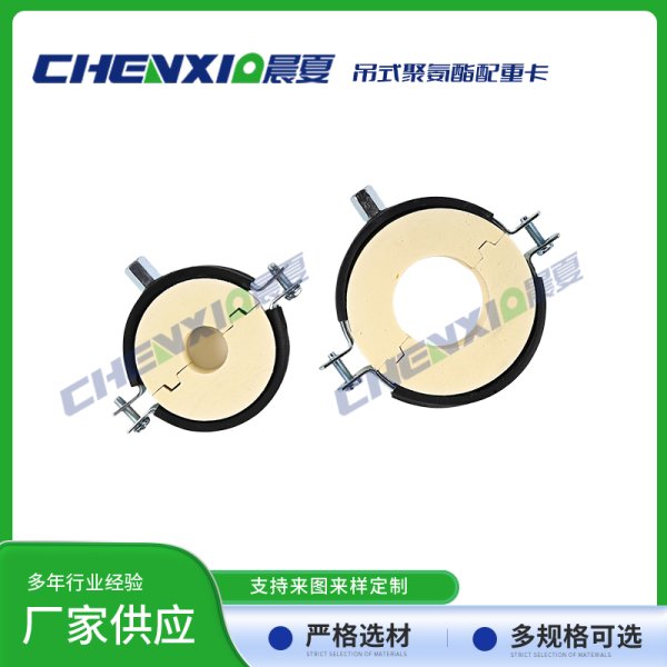 上海晨夏五金建材有限公司吊式PU聚氨酯管托配灯笼抱箍由异氰酸酯与聚醚为主原料,再加上发泡剂,触媒和阻燃剂,经高速搅拌混合反应生成的具有塑胶,橡胶和软木特性的发泡聚合体。泡体是由成千上万极微小均匀的单个细胞组成,呈立体蜂窝式的结构。其热传导率低,抗压强度高,吸水率低,有沥青木制品及其他类衬垫物难以比拟的优良性质,是深冷管道管托,鞍座及低温设备垫块的理想材料。在国内及欧美国 家用于石油化工基地,LNG液化气厂,冷链基地及中央空调系统之管托,支吊架及垫块等。